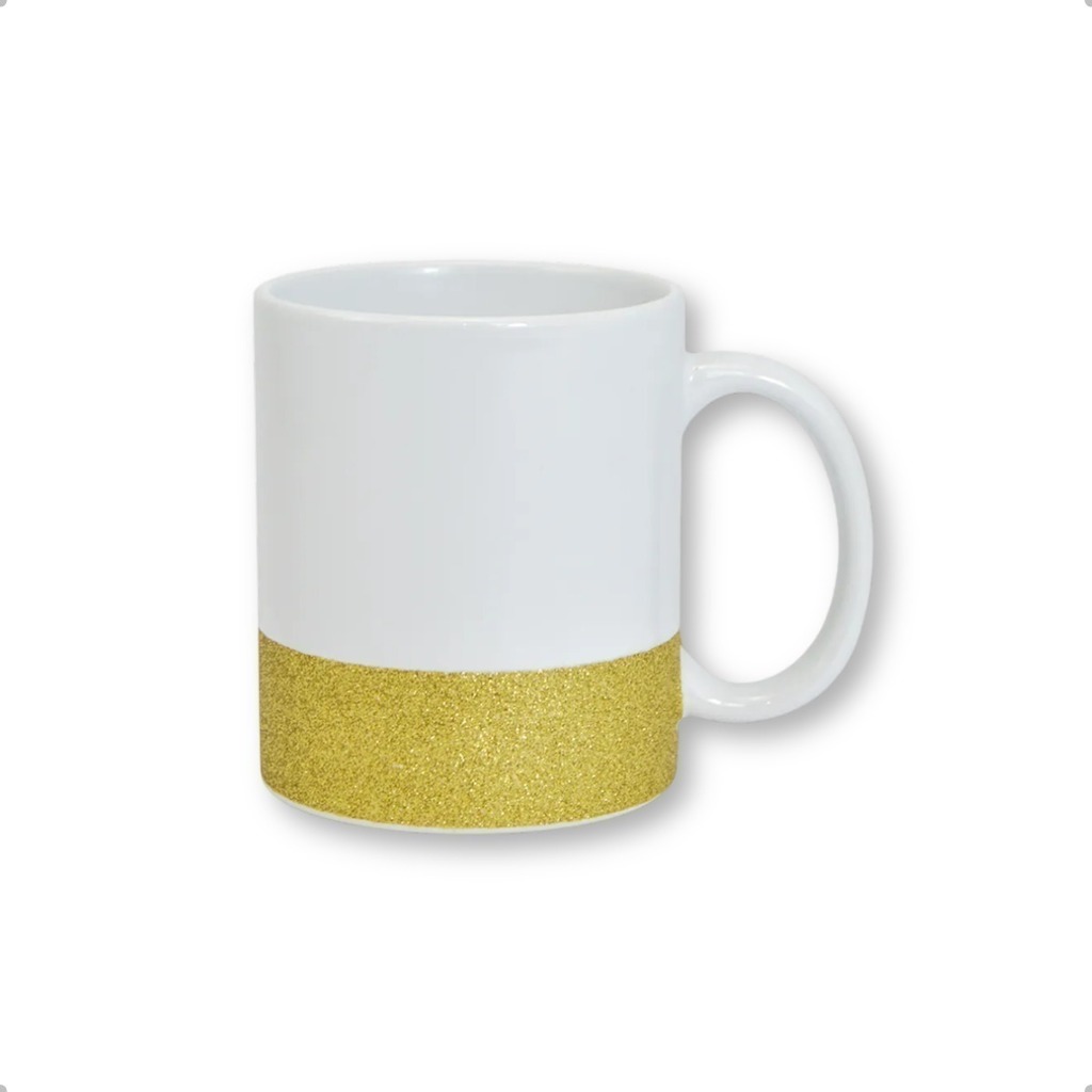 Caneca para Sublimação Branca com Base Glitter Dourada - 325ml